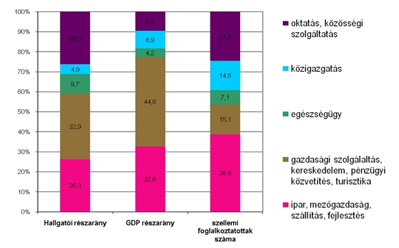 Felsőoktatási hallgatók és a munkaerőpiac szakterületi arányai 2010-ben